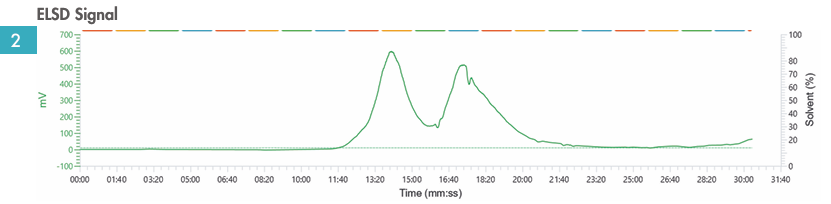 圖2:蒸發(fā)光散射檢測器呈現(xiàn)優(yōu)異的信號強(qiáng)度與平滑效果