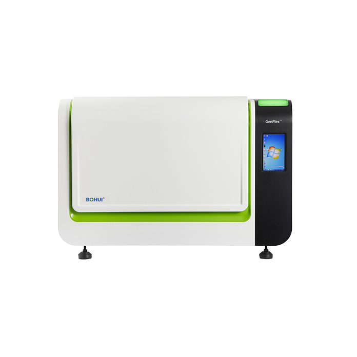 GenPlex?BHF-Ⅵ核酸芯片檢測(cè)儀采用微流控芯片結(jié)合反向斑點(diǎn)雜交技術(shù),將常規(guī)實(shí)驗(yàn)室中的樣品準(zhǔn)備區(qū)、擴(kuò)增區(qū)、產(chǎn)物分析區(qū)整合到儀器的微流控芯片上,通過(guò)芯片上微泵的驅(qū)動(dòng)作用,依次進(jìn)行目標(biāo) DNA 的提取純化、擴(kuò)增,雜交顯色,通過(guò)相機(jī)自動(dòng)拍照采集并進(jìn)行結(jié)果分析。